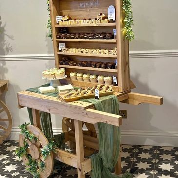 Our beautiful rustic Cart decorated to suit your occasion/theme and stocked full of your chosen bakes.